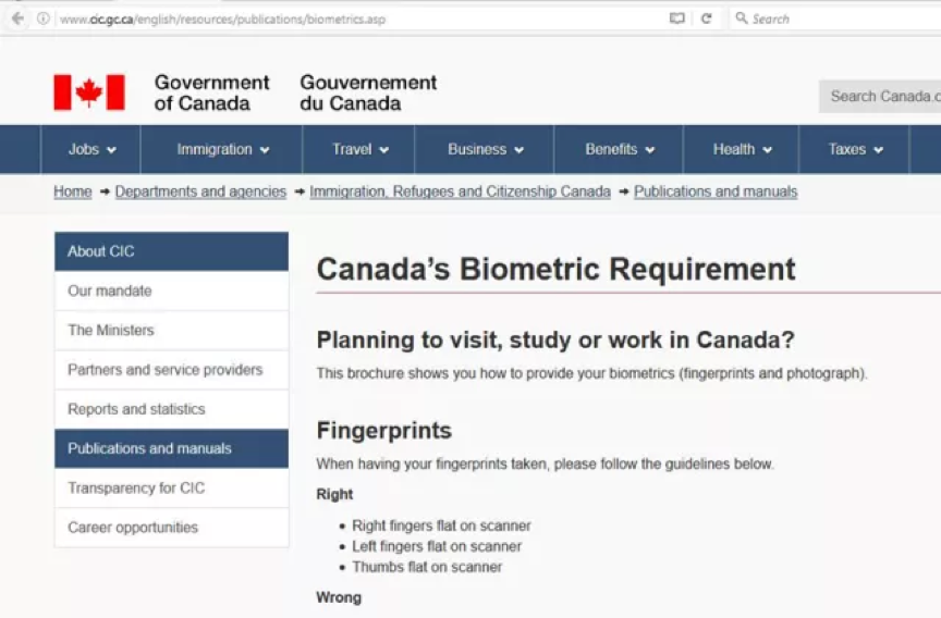 加拿大官方曾宣布了一系列加强边境管控的措施,其中包括对所有持有加拿大签证的外国旅客实施指纹识别等生物信息识别。
