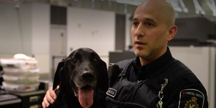 因为除了一般的X光安检仪和各种大汉外,CBSA还有“超级聪明,服从性高,嗅觉异常灵敏”的搜查犬。